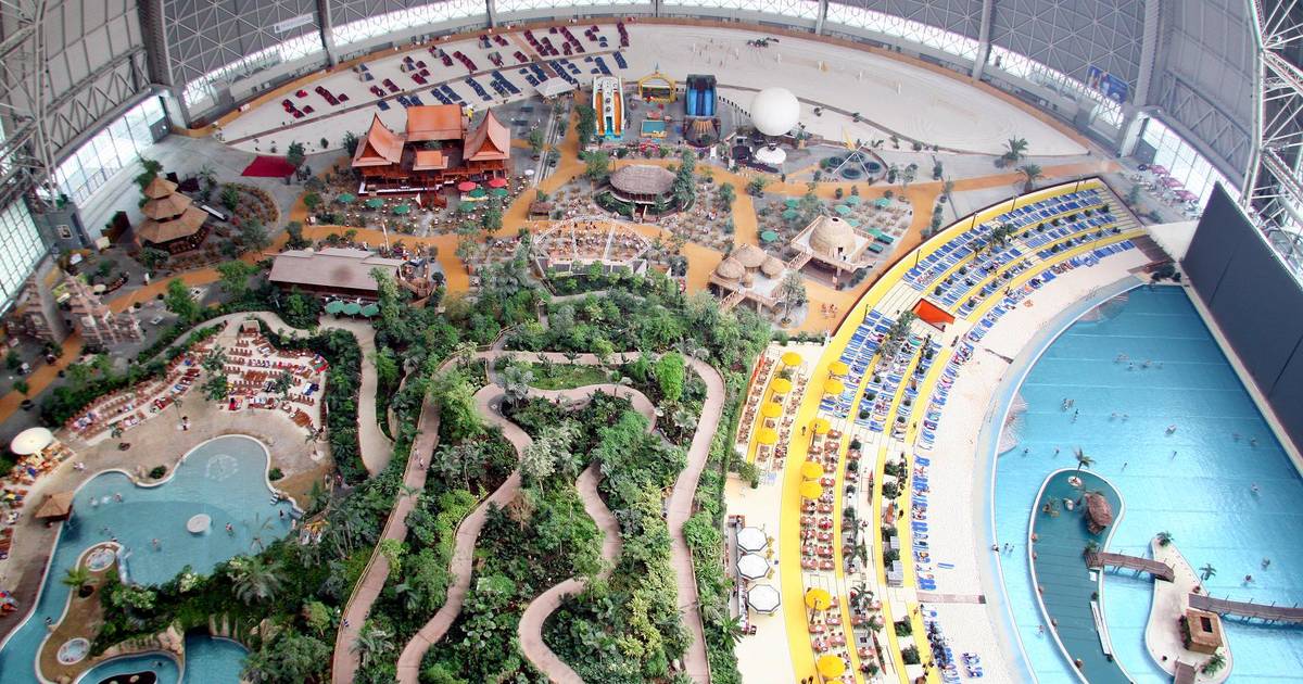 The resort is situated in the old airship hangar of the 1935-built Johannisthal Airfield. The hangar, which is the world’s largest free-standing hall and contains more than 20 million litres of water, is enormous.